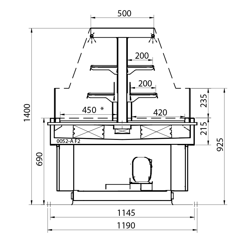 Äußere Tiefe 1190 mm, Auslagentiefe 450mm + 420*mm (3M1)/ 450*mm + 420 mm (3M2)